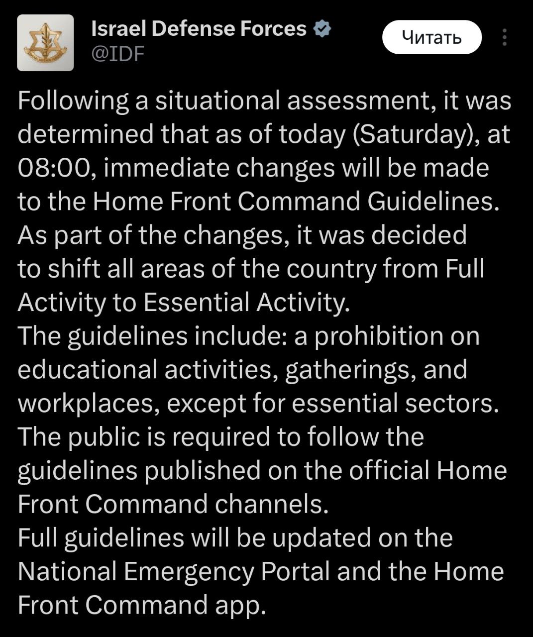 Израиль также официально закрыл свое воздушное пространство в связи с угрозой ответных атак. Оно направлено на предотвращение рисков для гражданских пассажиров и обеспечения безопасности полетов в условиях нестабильной ситуации.