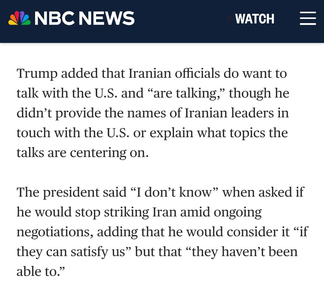 Отвечая на вопрос NBC News о том, прекратит ли он удары в случае новых переговоров, президент заявил: "Я не знаю".