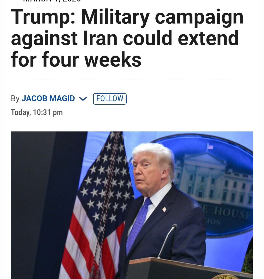 22:38 Кампания США против Ирана может продлиться до четырех недель, заявил Трамп.