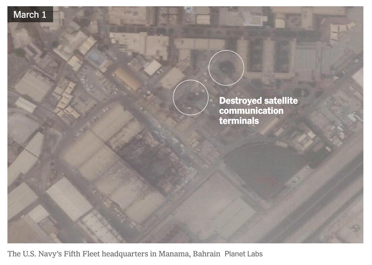 9.57 Минимум семь американских объектов спутниковой связи были поражены Ираном на территории пяти стран Ближнего Востока, сообщает The New York Times.