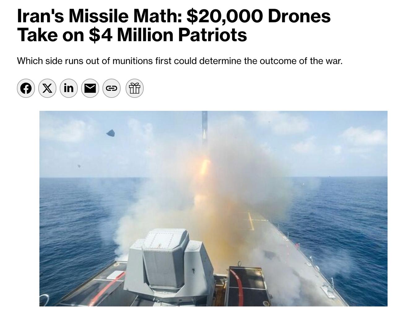 Иран атакует волнами беспилотников Shahed-136 стоимостью около $20 тыс., тогда как для их перехвата США и их союзники используют ракеты Patriot PAC-3 стоимостью примерно $4 млн. По данным ОАЭ, эффективность перехватов превышает 90%, однако такая модель обороны истощает американские запасы.