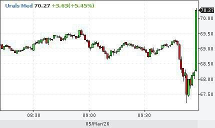 10:31 На фоне топливного кризиса из-за войны на Ближнем Востоке российская нефть марки Urals подорожала до 70,72 долларов за баррель.