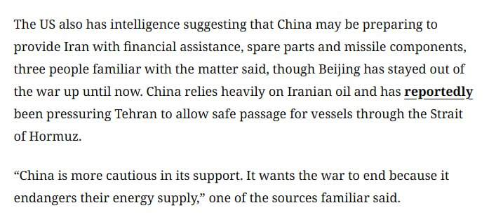 При этом, как сообщается, Китай сильно зависит от иранской нефти и поэтому оказывает давление на Тегеран, требуя обеспечить безопасный проход судов через Ормузский пролив.