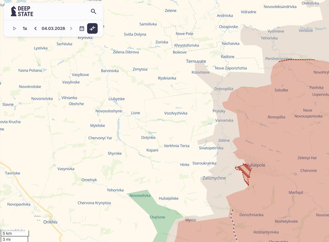 За последнюю неделю продвижение оказалось небольшим - в среднем до 1–1,5 километра, однако РФ удалось втянуться в бои за Зализнычное, а отдельные штурмовые группы фиксируются уже западнее этого населенного пункта.
