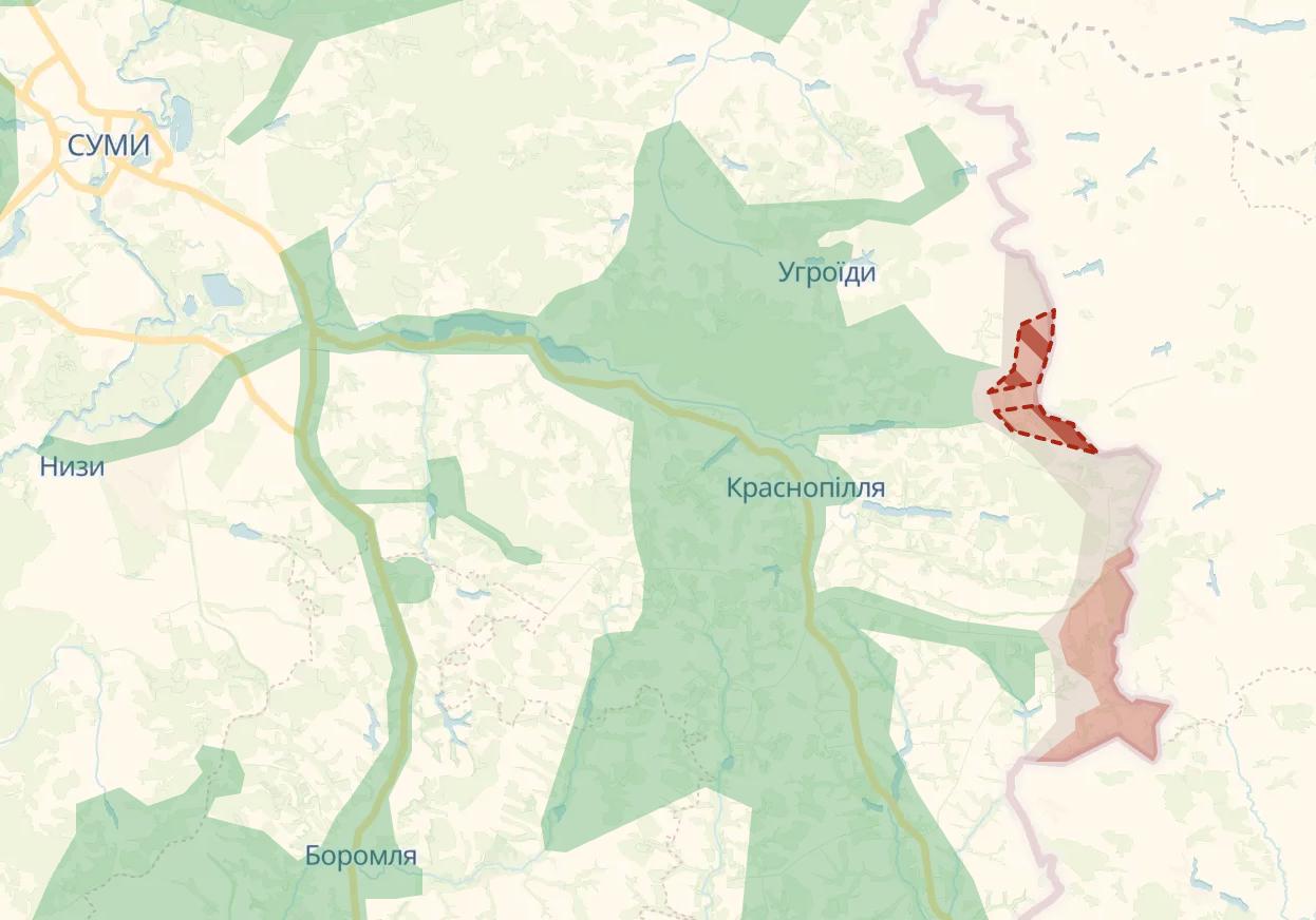 Армия РФ существенно расширила зону контроля в приграничном селе Покровка Сумской области, сообщает Deep State. Серая зона соединила этот участок с соседним российским плацдармом в Грабовском.