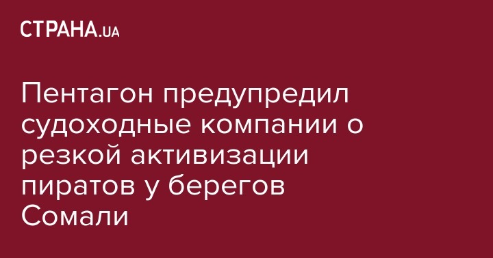 Военное ведомство США сообщило о росте случаев нападений пиратов у берегов Сомали и предупредило судоходные компании о необходимости принимать повышенные меры безопасности. Об этом пишет "Интерфакс-Украина".