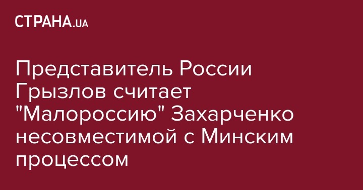 Представитель России Грызлов считает "Малороссию" Захарченко несовместимой с Минским процессом