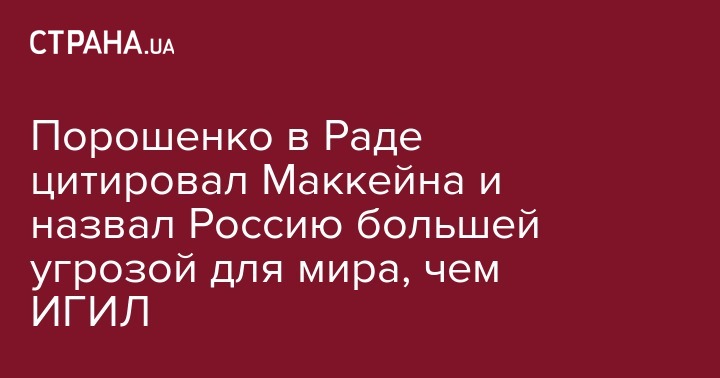 Порошенко в Раде цитировал Маккейна и назвал Россию большей угрозой для мира, чем ИГИЛ