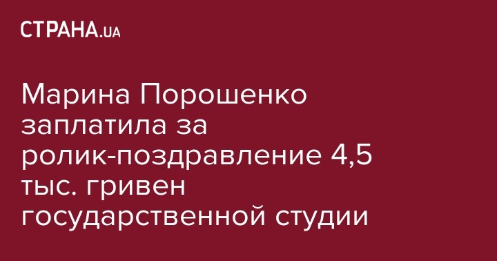 Марина Порошенко заплатила за ролик-поздравление 4,5 тыс. гривен государственной студии