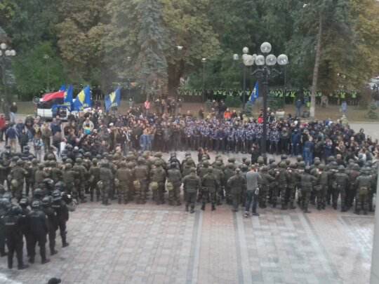 Об этом представитель "Нацкорпуса" сообщил и силовикам, которые стояли в оцеплении перед парламентом. После этого силовики окружили националистов, находящихся на площади перед Радой, взяв их в кольцо.