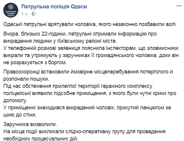 В Одессе полиция спасла должника, которого заковали в цепи