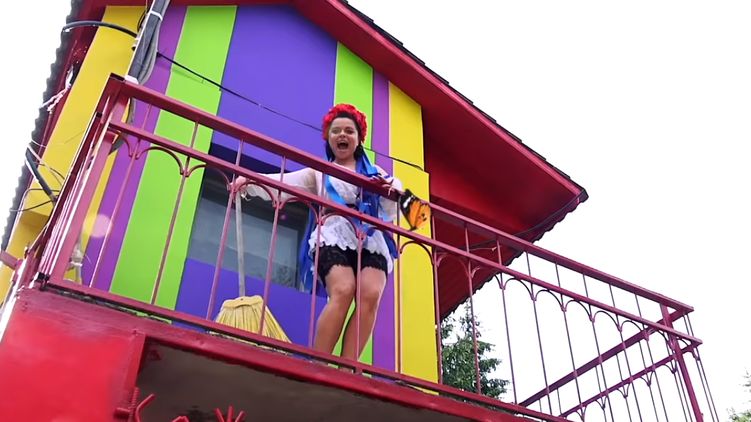 На ролике 47-летняя Королева одета в вышитую блузу, а на голове - красный веночек с лентами. Чтобы создать колорит украинского села в клипе запечатлена огорожа с горшками и нарисованные подсолнухи с тыквами.