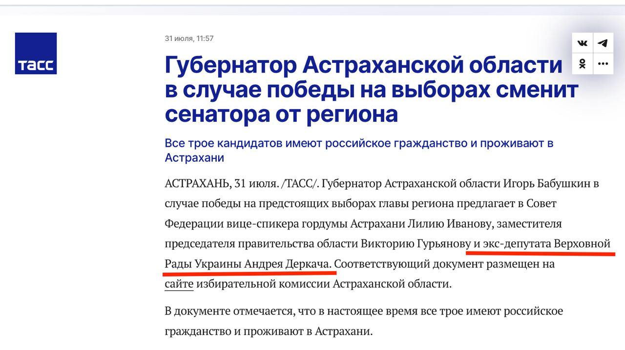 У замітці також написано, що зараз екс-нардеп Ради має російське громадянство і проживає в Астрахані.