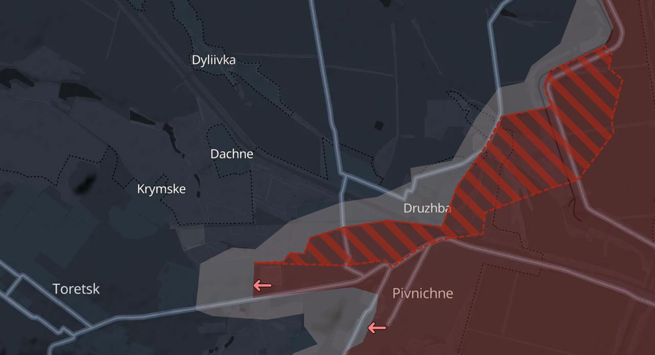 8.25 Російські війська просунулися на схід від Торецька – в районі Дружби та Північного.