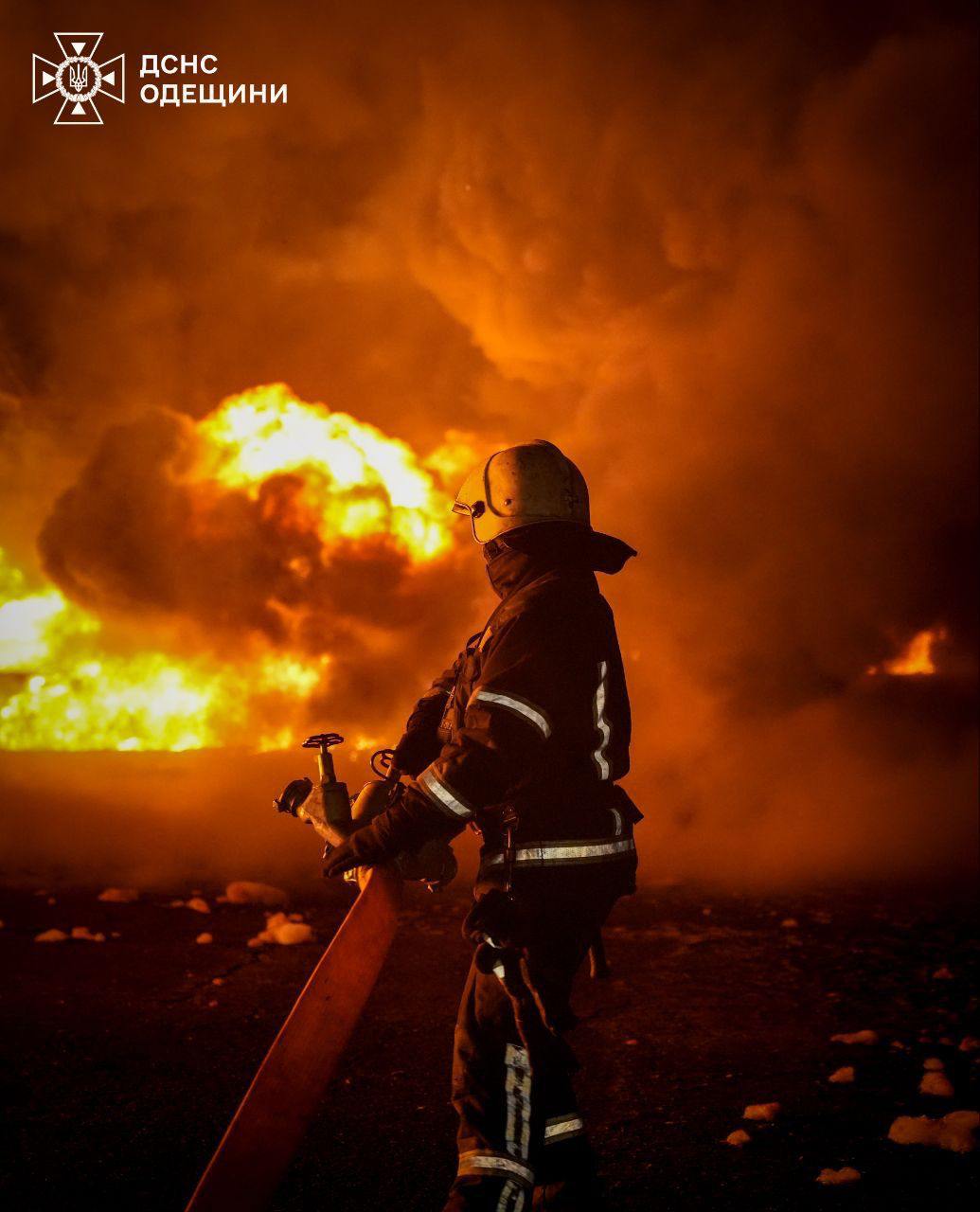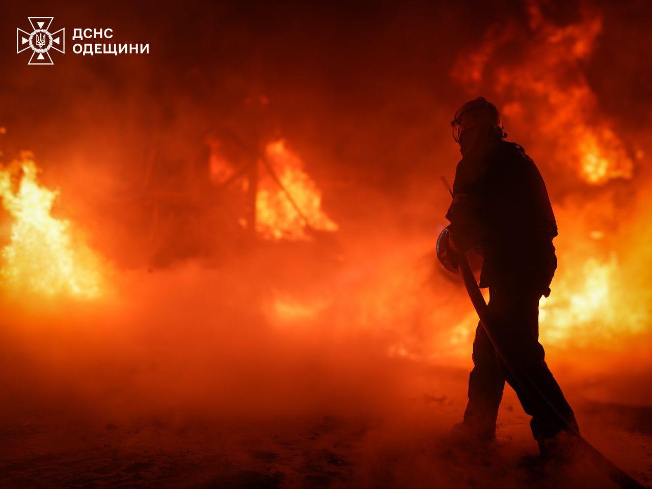 11:03 Кадри пожежі в Одесі після удару по припортовій інфраструктурі публікує ДСНС.