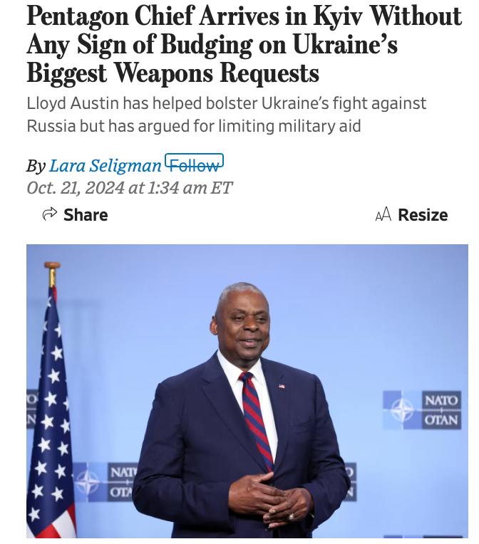 Видання повідомляє, що він приїхав "з повідомленням про тверду відданість США військовим зусиллям України, але без нової військової допомоги чи дозволу на використання ракет великої дальності всередині Росії".