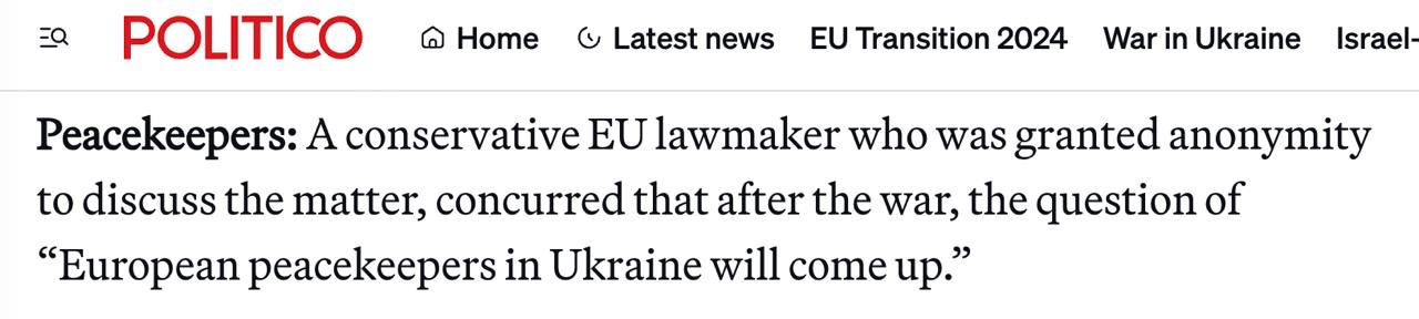 12:00 Євросоюз порушить питання про відправлення своїх миротворців до України після війни, анонімно заявив Politico консервативний законодавець ЄС.