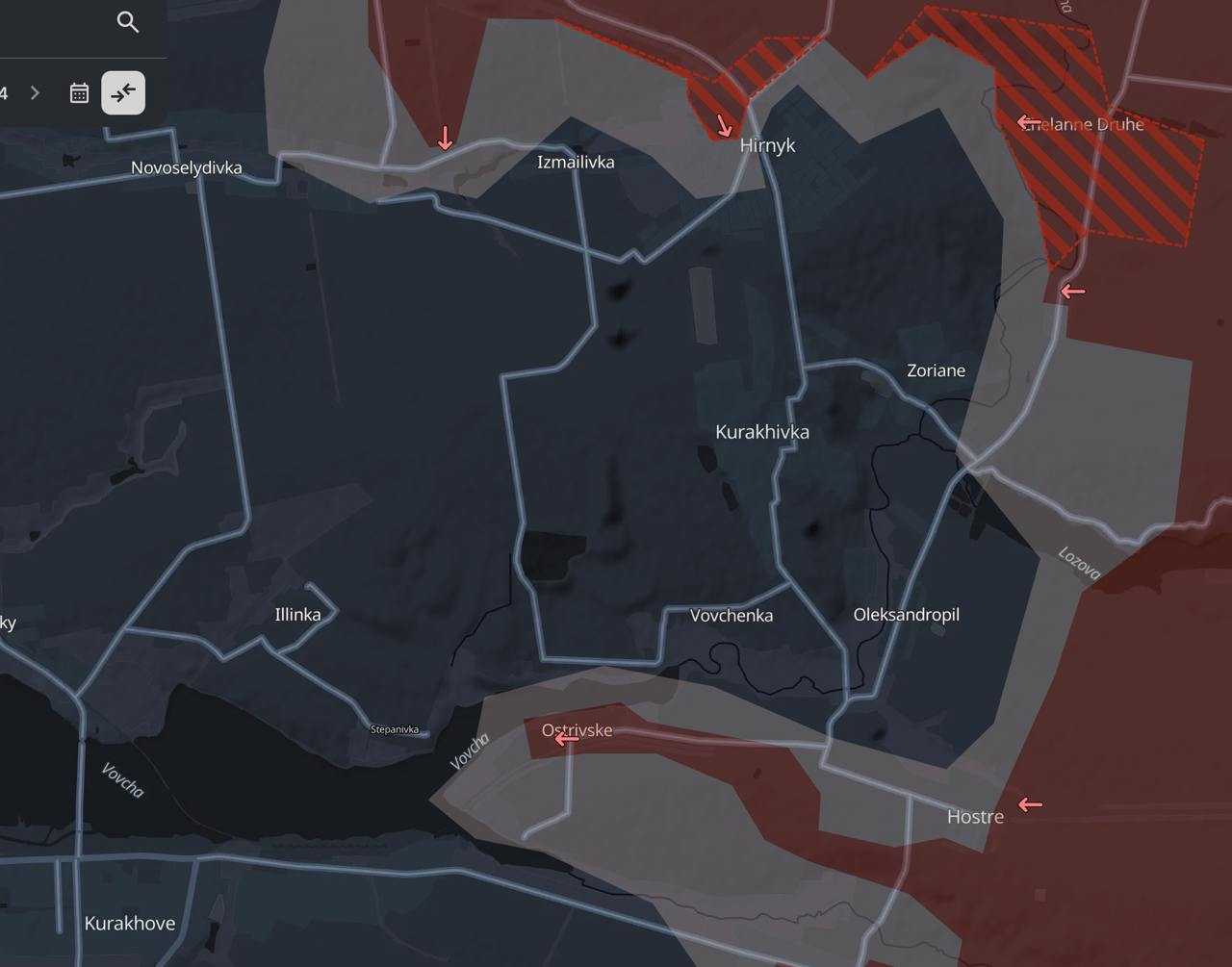 На південний схід, у Гірнику росіяни також мали просування. Причому як у самому місті, про що писали українські військові, так і на південь від нього із боку Зоряного.