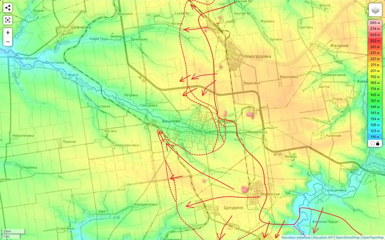 Судячи з карт, мова про трасу на Покровськ. Тобто багато в чому повторюється ситуація з Вугледаром.