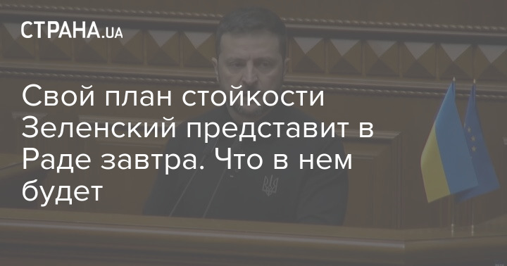 Володимир Зеленський завтра представить у Верховній Раді план стійкості – документ щодо внутрішньої політики в Україні під час війни.