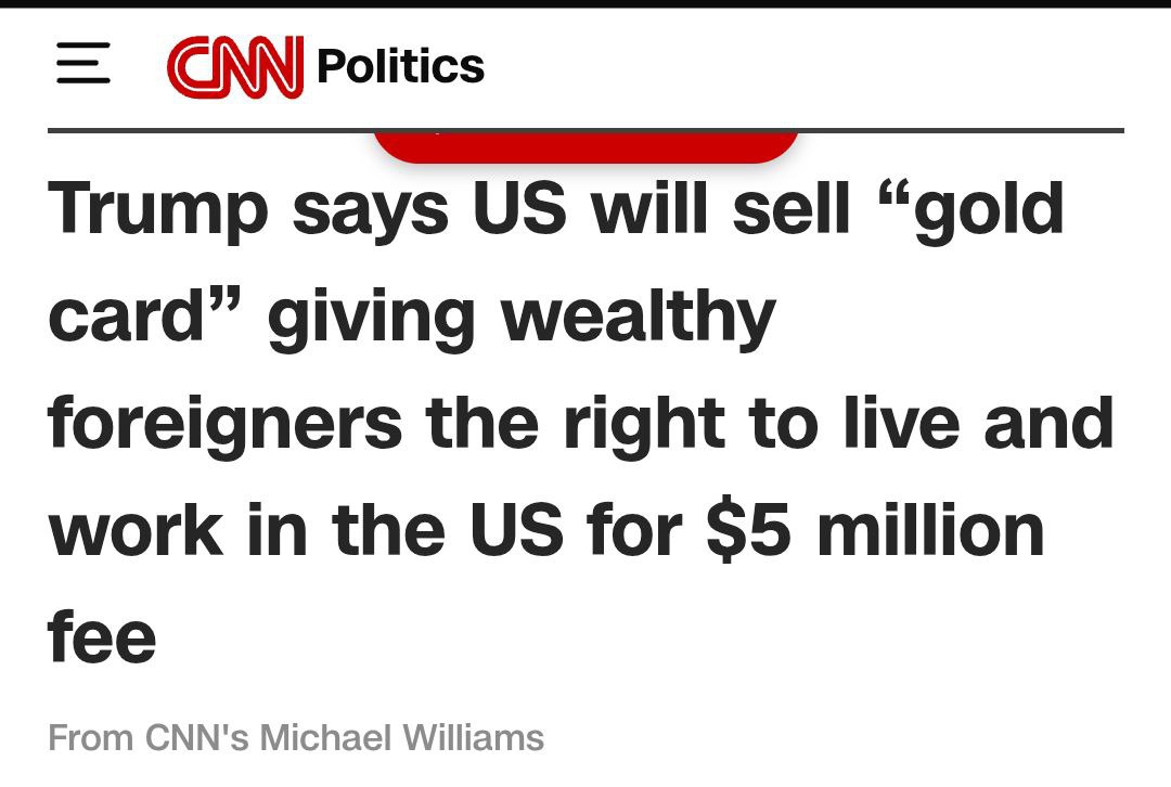 США запроваджують програму "Золота карта", за якою можна буде отримати громадянство за великі гроші за спрощеною схемою.