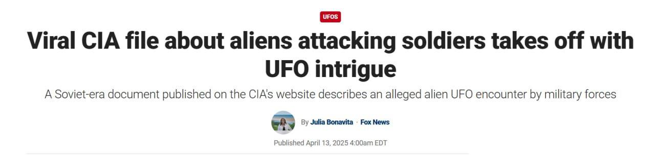 В опублікованих документах сказано про нібито збиття радянськими солдатами НЛО, що пролітало над військовою базою.