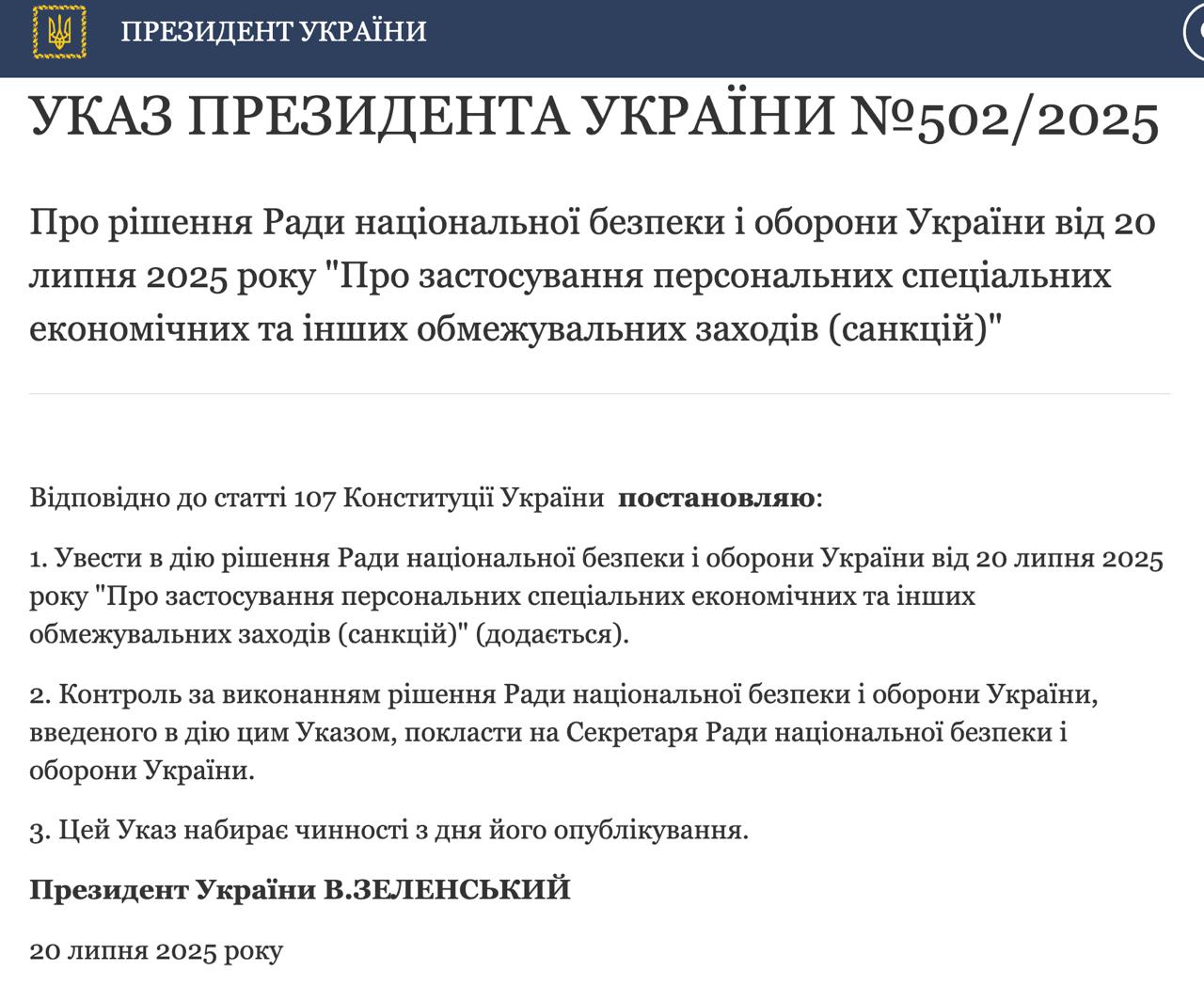 Відповідний указ №502 з’явився на сайті Офісу Президента.