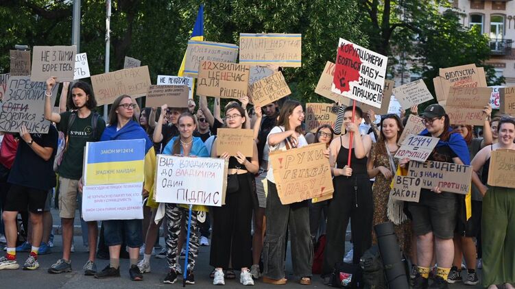 В Україні відновилися акції протесту проти закону, що обмежує повноваження НАБУ та САП.