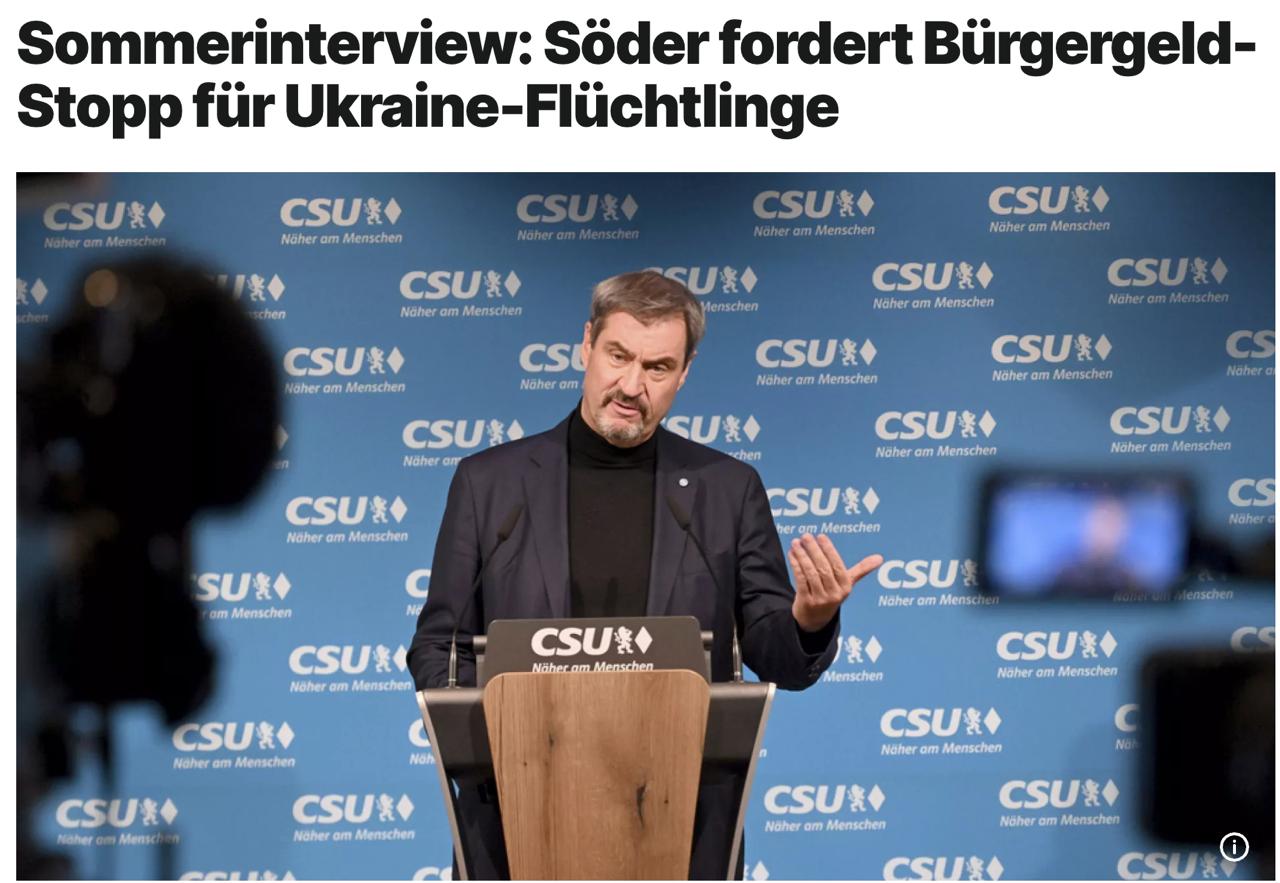 Прем'єр-міністр Баварії Маркус Зьодер (партія "Християнсько-соціальна спілка") закликав позбавити всіх українських біженців у ФРН права на отримання підвищеної допомоги – Bürgergeld (бюргергельд).