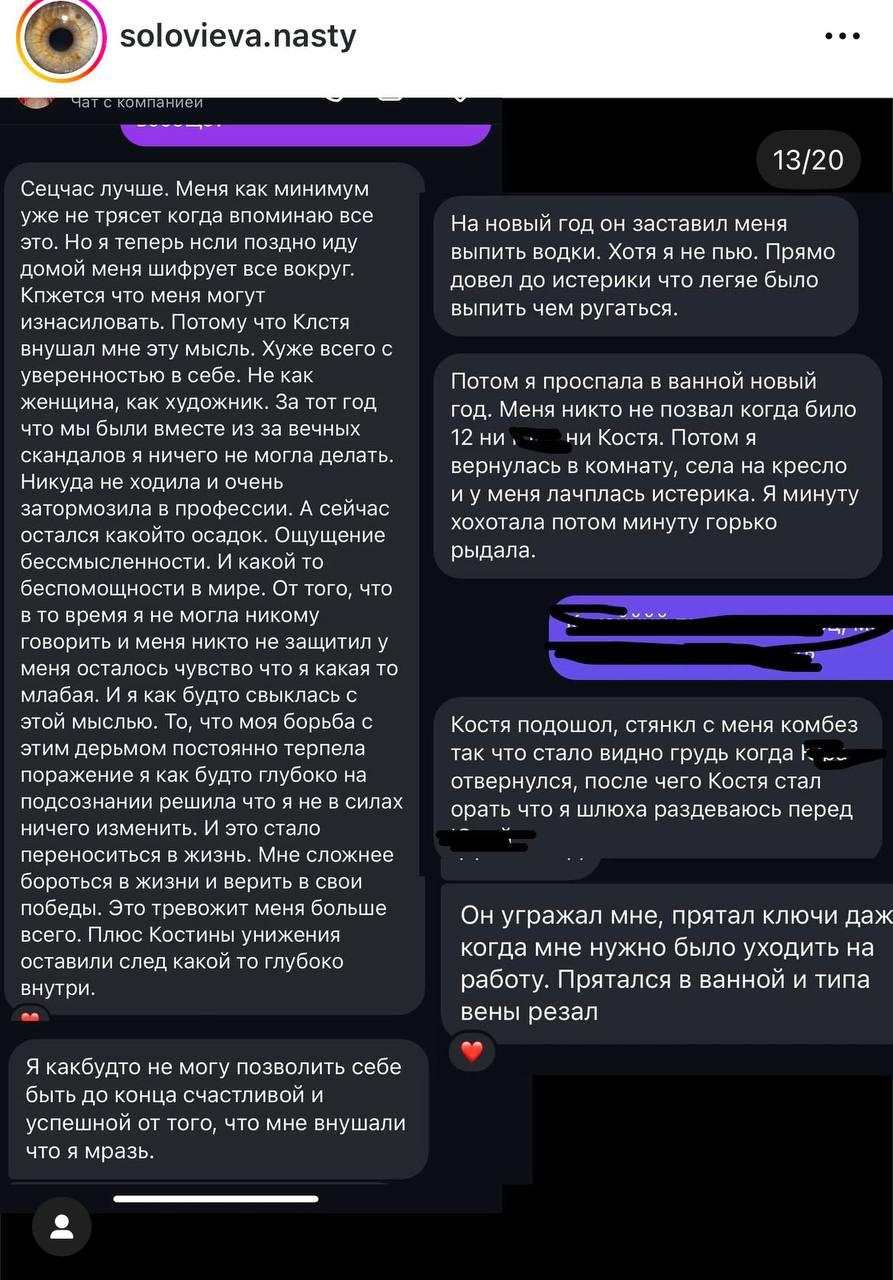 На звинувачення відреагувала в Інстаграмі дружина актора Анастасія Нестеренко, також артистка. За її словами, вона не зазнавала фізичного чи емоційного насильства з його боку. Але додала, що жахливо дізнатися правду про людину, з якою планувала спільне майбутнє.