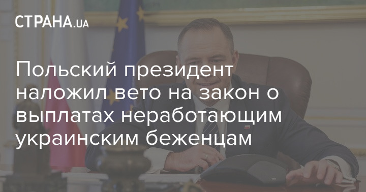 Президент Польщі Кароль Навроцький ветував закон про соціальні виплати та медичне забезпечення для непрацюючих українців. Йдеться, зокрема, про виплату 800 злотих (понад 200 доларів) на кожну дитину.