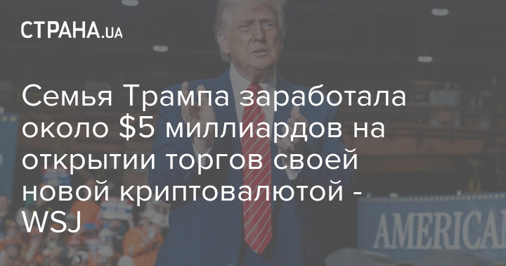 Сім'я Трампа заробила близько $5 мільярдів на відкритті торгів своєю новою криптовалютою - WSJ