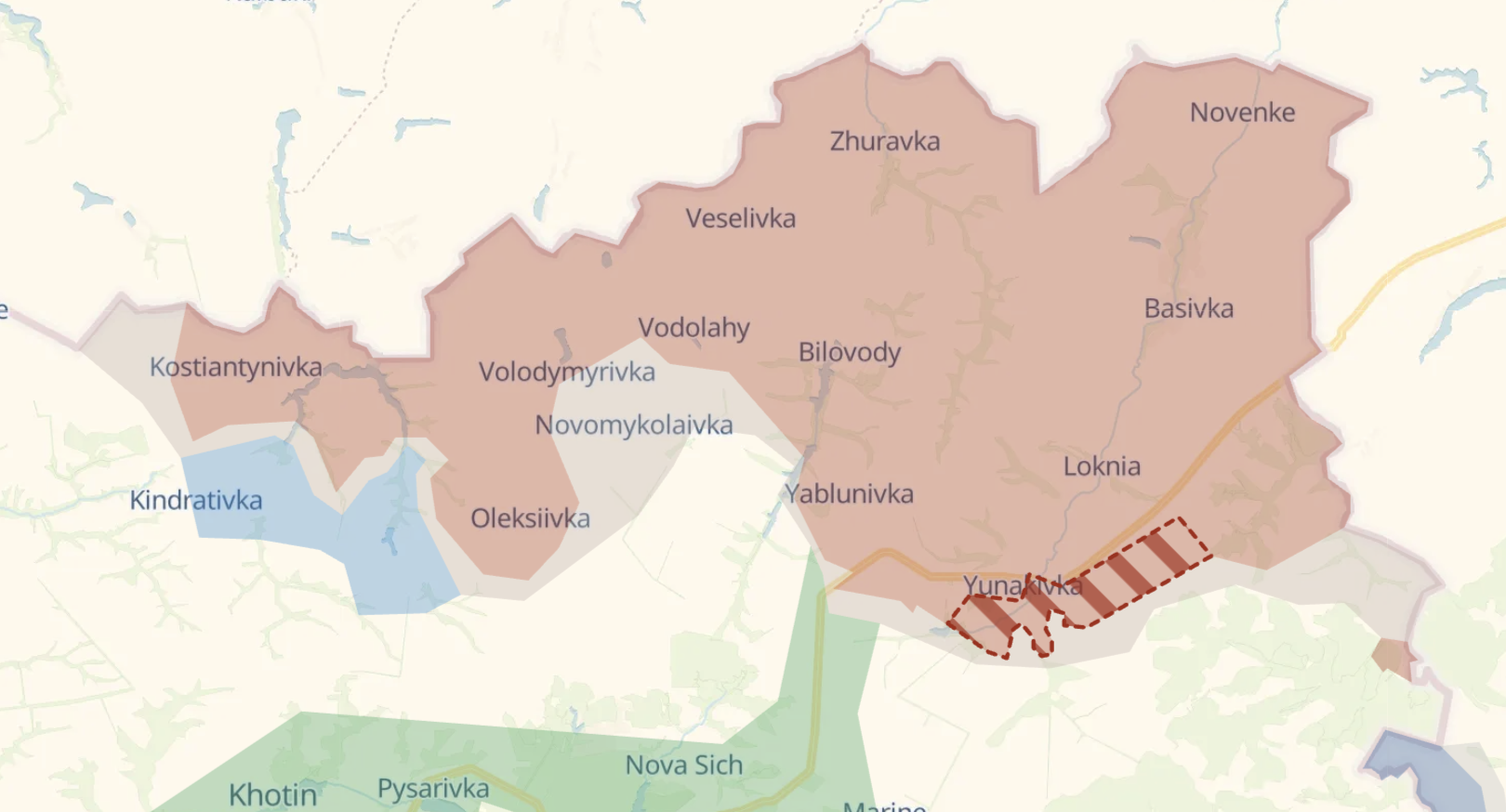 Цей населений пункт знаходиться між Соснівкою та Вороним. Про просування на цьому напрямі росіян повідомляв український військовий паблік Deep State. На карті паблика село частково у сірій зоні, частково під контролем РФ.
