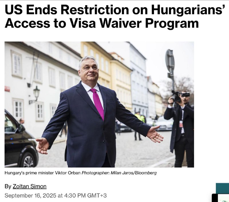 Міністр внутрішньої безпеки США Крісті Ноем оголосила, що всім громадянам Угорщини з 30 вересня знову дозволять подавати заяви на отримання дворічної візи з правом багаторазового в'їзду.