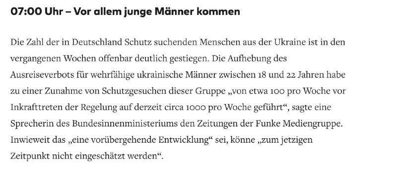 Читачі "Країни" в одній із німецьких земель, які живуть у невеликому провінційному місті, також констатують, що у кафе, громадському транспорті та соціальних установах молодих чоловіків з України стало дуже багато.