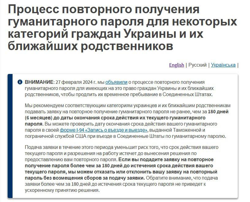 Про це йдеться в інформації, що з'явилася на сайті служби громадянства та імміграції США (USCIS).