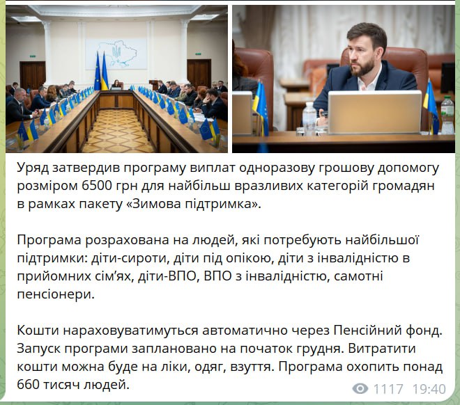 Кабінет міністрів України затвердив пакет "Зимова підтримка" для вразливих категорій громадян.