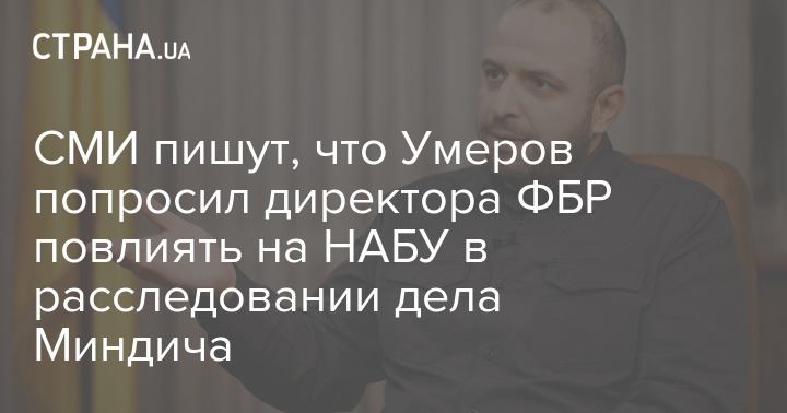 ЗМІ пишуть, що Умеров попросив директора ФБР вплинути на НАБУ у розслідуванні справи Міндіча