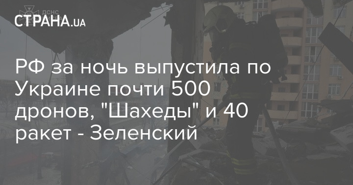 РФ за ніч випустила по Україні майже 500 дронів, "Шахеди" та 40 ракет - Зеленський