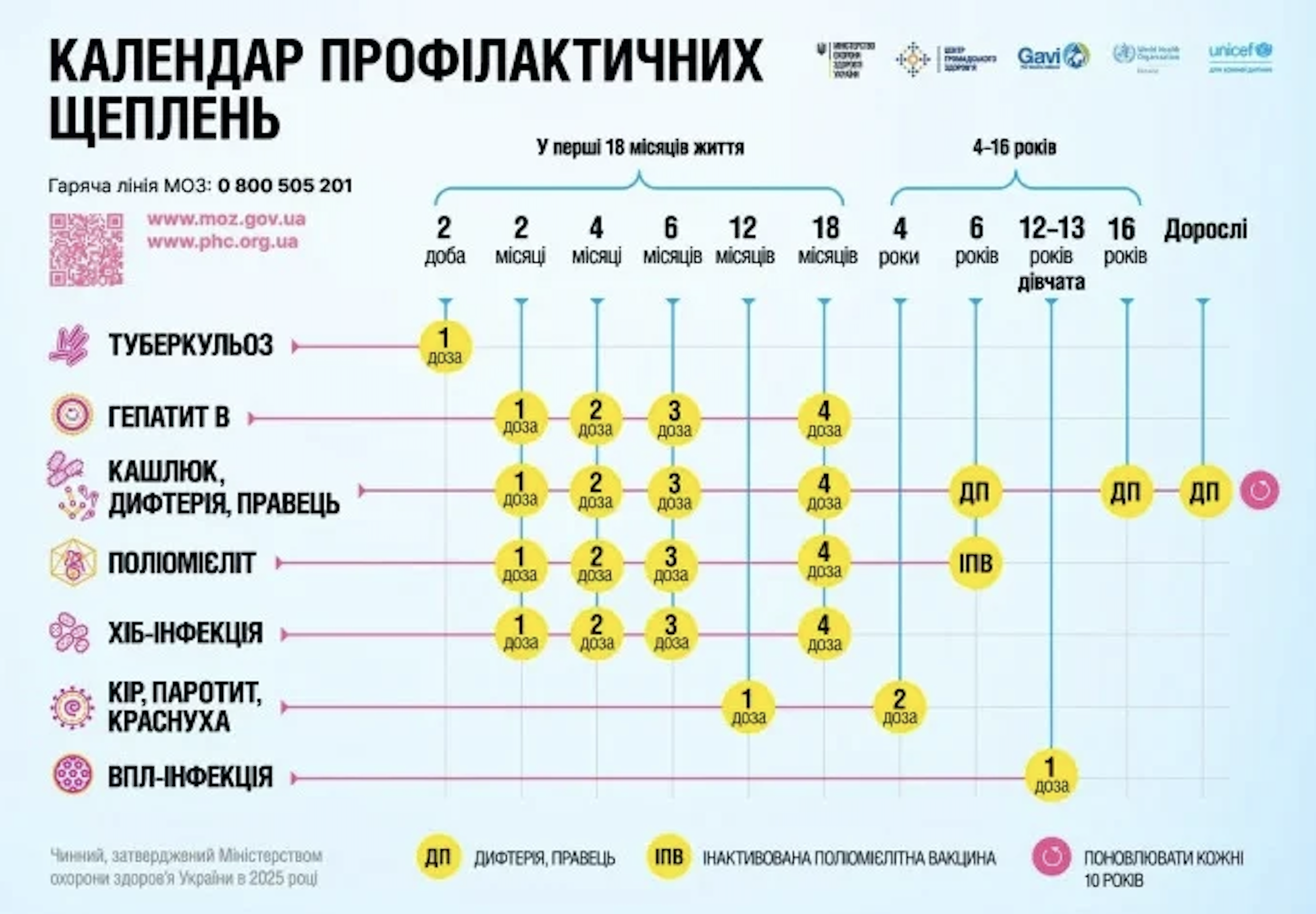 Інше медичне нововведення – оновиться національний календар вакцинації. Вакцина проти туберкульозу вводитиметься раніше, а для дівчаток 12–13 років з'явиться щеплення від вірусу папіломи людини (детальніше на інфографіці нижче).