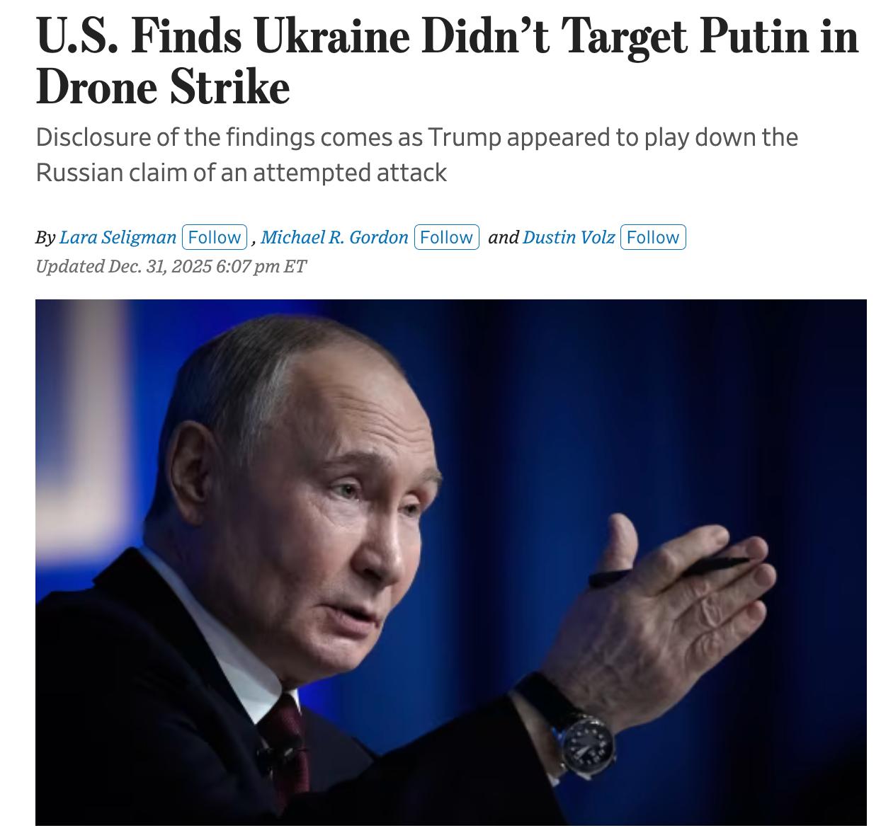 Вони повідомили газеті про висновки ЦРУ, згідно з якими "спроби нападу на Путіна не було".