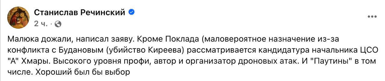 У свою чергу видання "Українська правда" повідомляє, що у суботу на зустрічі з президентом України Володимиром Зеленським Малюк відмовився писати заяву про звільнення та переходити до СЗР чи РНБО. Він пояснив це тим, що у нього на фінальній стадії є кілька великих операцій, і кидати їх зараз не можна.