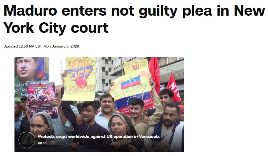 Нагадаємо, сьогодні в Нью-Йорку вертоліт доставив Мадуро до суду. Якщо його визнають винним за федеральними звинуваченнями в торгівлі наркотиками та іншими злочинами, йому загрожує страта. Але швидше за все він проведе решту життя у в'язниці.