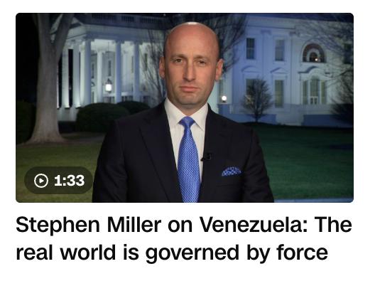 "Можна скільки завгодно говорити про міжнародні пристойності і все інше, проте ми живемо у світі, у реальному світі, який керується силою та могутністю. Це залізні закони світу", - сказав він, відповідаючи на запитання про те, чи є в.о. президента Венесуели Делсі Родрігес главою держави.