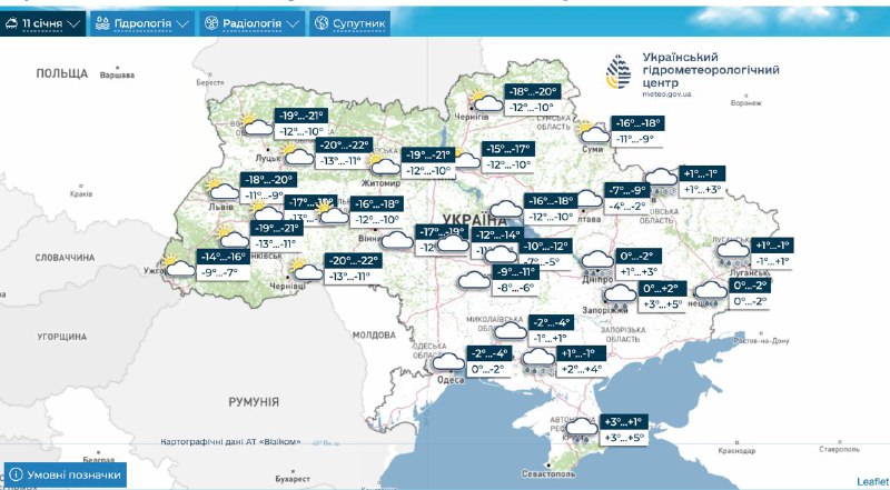 У західних та північних областях, а також у Вінницькій та Черкаській температурах вночі може знизитися до -14...-20 градусів, місцями до -23. Вдень очікується від -9 до -15 градусів.