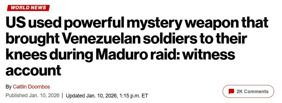 Під час операції із захоплення екс-президента Венесуели Ніколаса Мадуро військові США застосували потужну невідому зброю, яка знешкодила венесуельських солдатів та техніку.