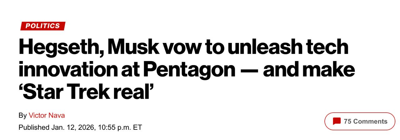 За інформацією видання, міністр війни Піт Хегсет оголосив, що Пентагон активно впроваджує ШІ у свою роботу: у грудні у всіх засекречених та незасекречених мережах відомства було запущено Gemini від Google, а до кінця січня запустять модель Grok від Х Ілона Маска. Хегсет заявив, що обом нейромережам нададуть "усі необхідні дані" з військових IT-систем, включаючи бази даних розвідки, для підвищення технологічних інновацій та ефективності військових операцій. Grok працюватиме для обробки контрольованої незасекреченої інформації, зокрема, надаватиме глобальні аналітичні дані в режимі реального часу з платформи X, зазначає портал Teslarati.