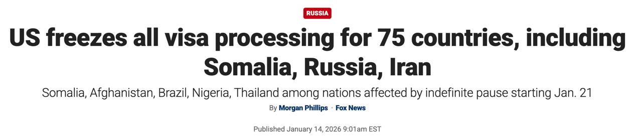 Державний департамент зупиняє обробку всіх заявок на американські імміграційні візи для громадян 75 країн у рамках заходів боротьби з приїжджими, які можуть стати тягарем для суспільства.