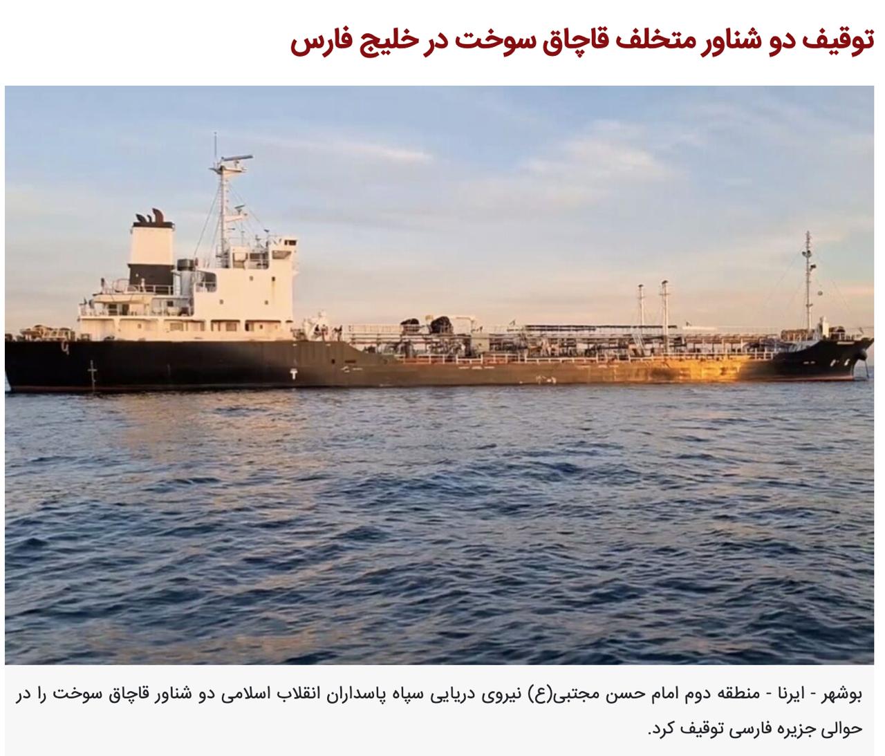 Іранські ЗМІ пишуть, що на танкерах перевозили понад 1 млн літрів палива, а службовці КВІР затримали 15 членів екіпажу і передали їх судовій владі. За даними журналістів, контрабанда на цих танкерах здійснювалася останні кілька місяців у рамках злочинної мережі.